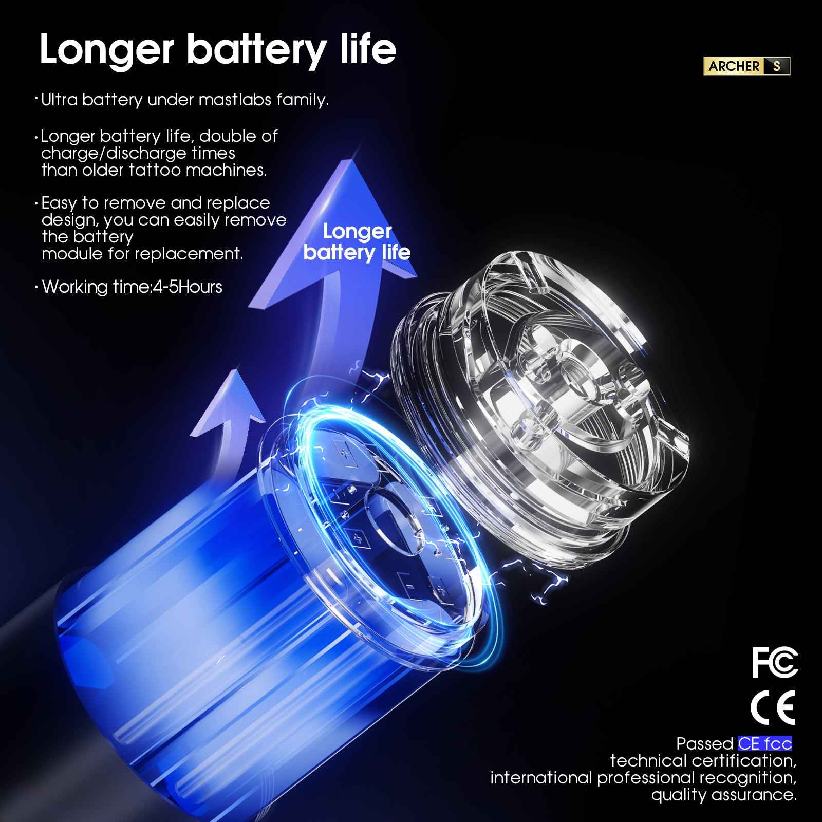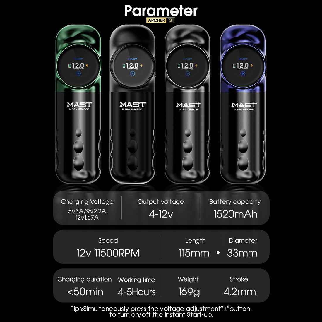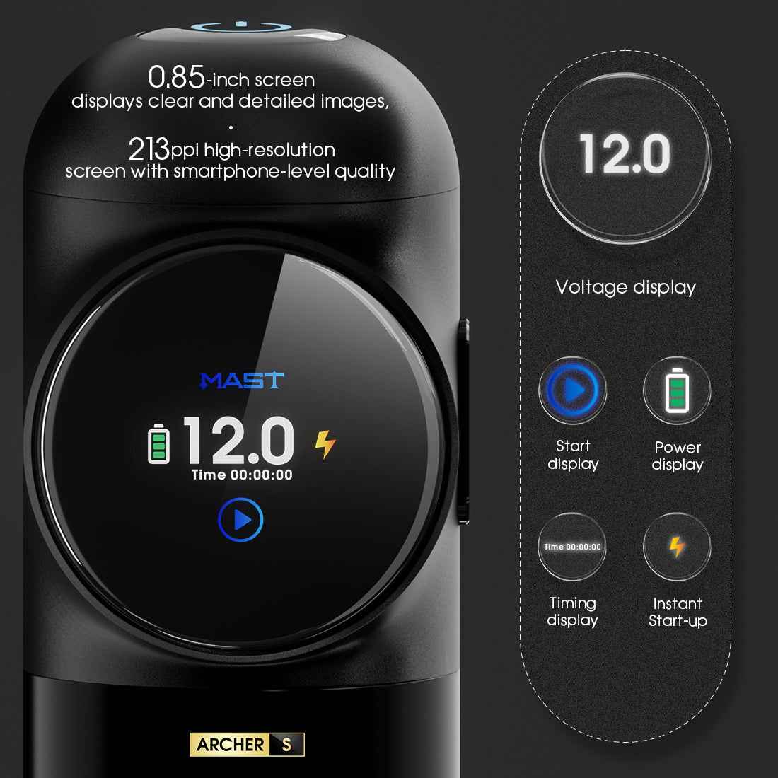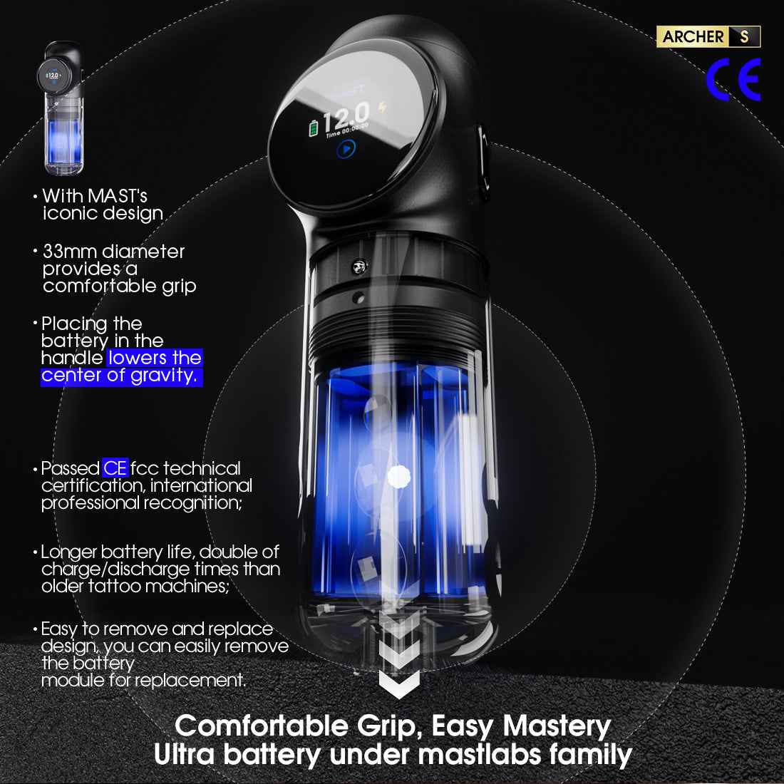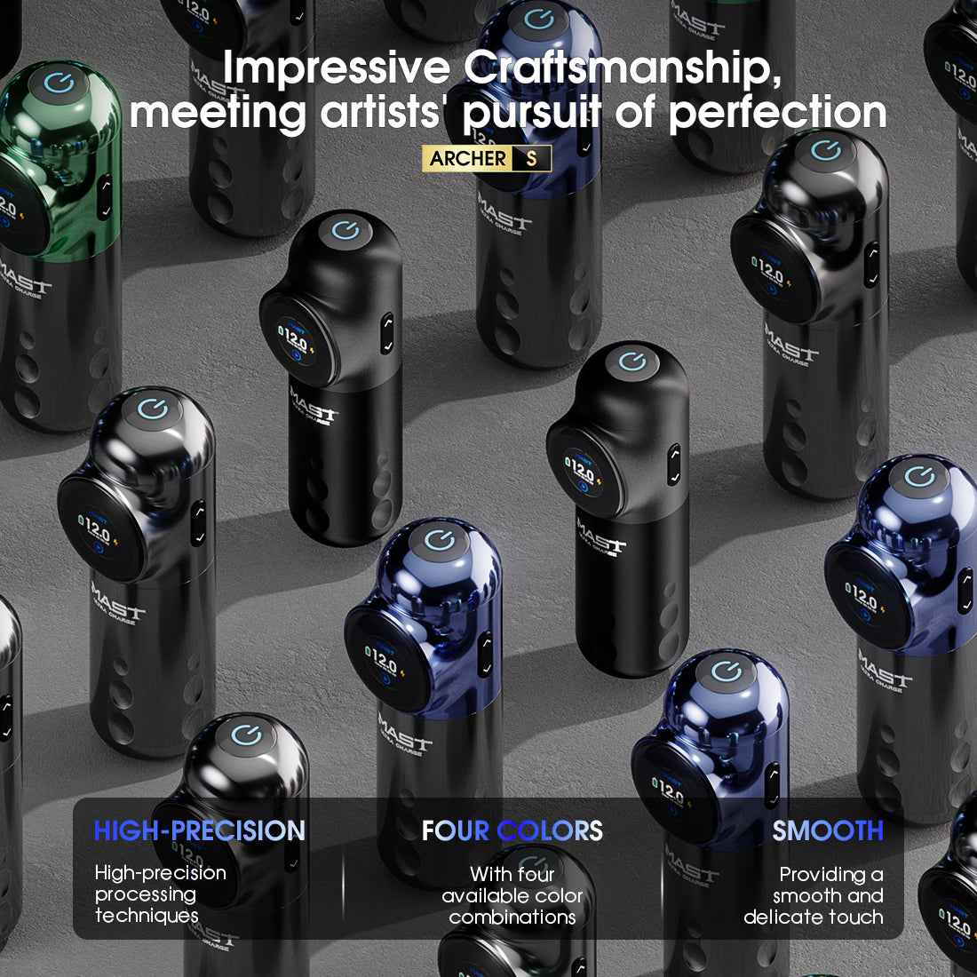 • Mast Archer S | Mast Tattoo Gun Archer S Super Fast Charging Wireless Pro Tattoo Pen Machine, 290g.cm Torque Powerful Brushless Mcore Motor, 4.2mm Strokes Length Compact for Tattoo Artists